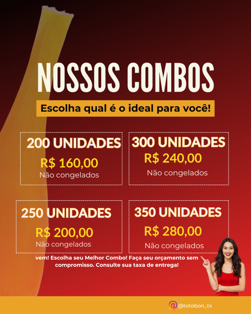 Com preços de fábrica e combos a partir de 50 unidades, oferecemos totós naturais e congelados perfeitos para quem quer ganhar uma renda extra ou até montar o seu próprio negócio.