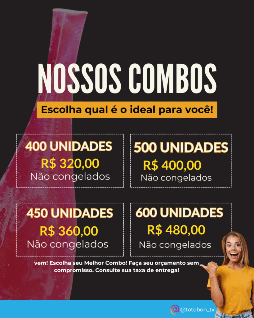“Comprei o combo de 100 totós naturais pra revender aqui na minha rua e vendi tudo em dois dias! Já fiz meu segundo pedido. É qualidade e lucro garantido!”